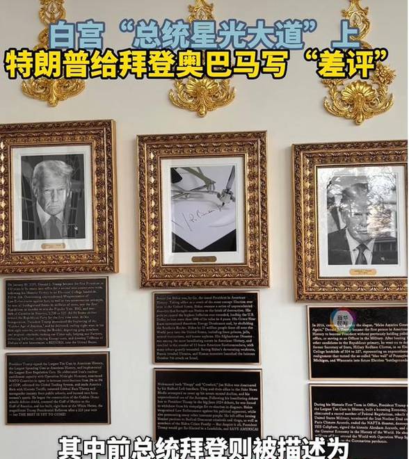 白宫“总统星光大道”上 特朗普给拜登、奥巴马写“差评”