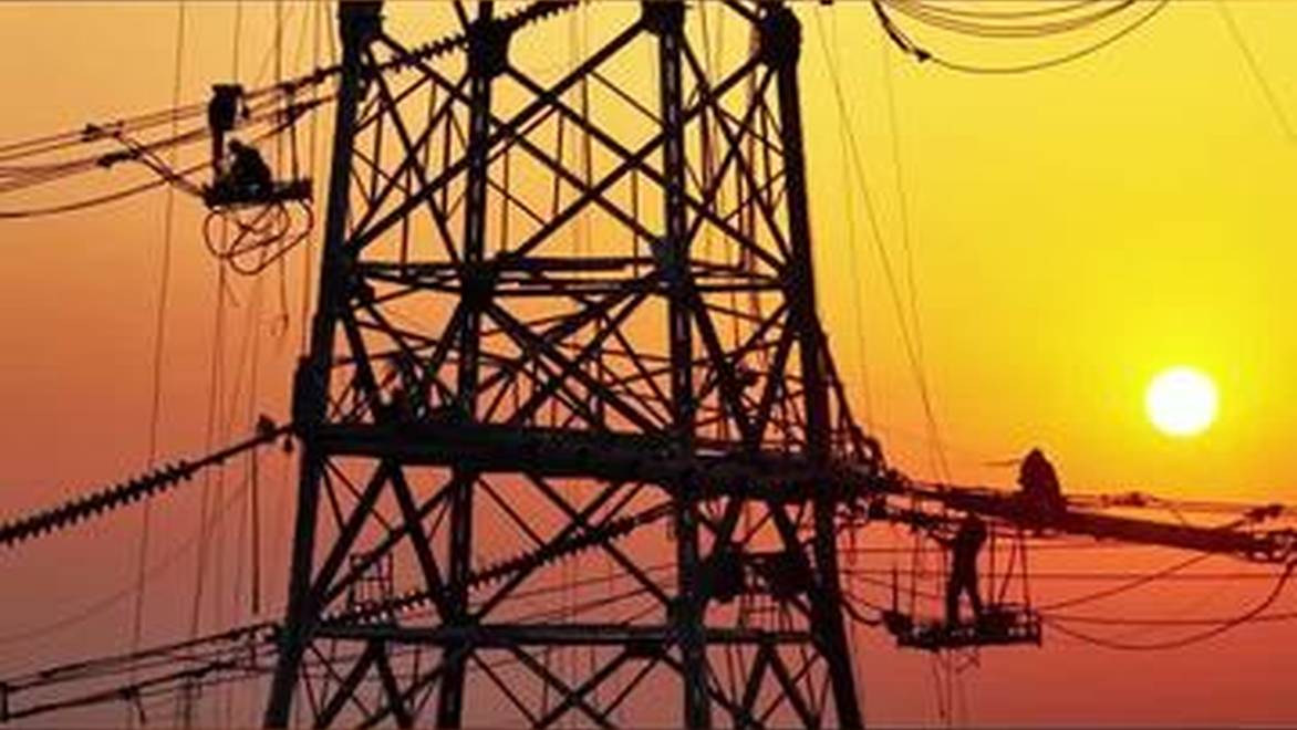 飞阅中国|夕阳下,电力工人的剪影犹如跳动音符