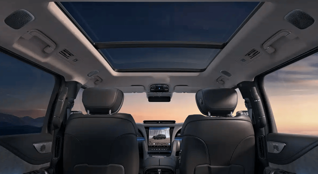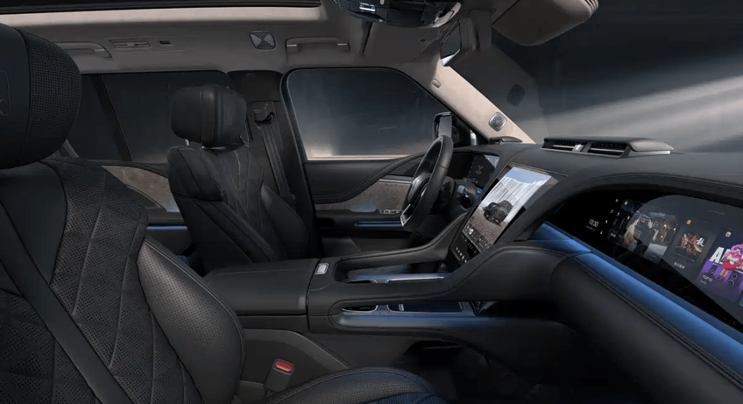 科技配置上,12.8英寸星河曲面屏依旧是视觉中心,这块OLED屏幕拥有37度倾斜角,既能有效避免反光,也让驾驶者操作更加得心应手。此外,23.6英寸的全液晶仪表与副驾娱乐屏、后排两块独立娱乐屏共同组成了五屏联动系统,支持视频内容无缝流转,无论前排还是后排乘客,都能享受顶级的视听体验。