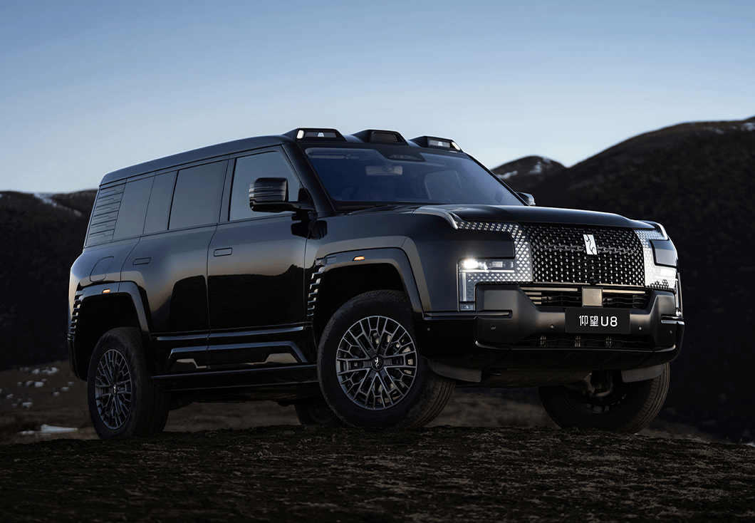 2026款仰望U8在外观上延续了极具辨识度的“时空之门”设计语言,巨大的“工”字型格栅搭配点阵式LED光源,无论是白天还是夜晚,都能让你一眼认出它的身份。车身侧面依旧保持了方正平直的线条,不仅视觉上威严大气,更兼顾了车内空间的最大化利用。尺寸方面,新车长宽高分别为5319/2050/1930mm,轴距达到3050mm,妥妥的大型SUV身材。